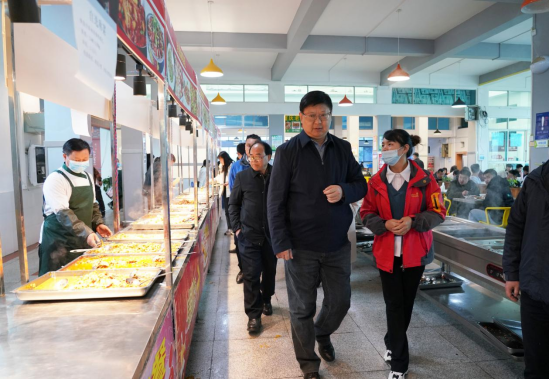 褚光荣一行先后来到学生食堂、公寓、操场,现场调研“我为群众办实事”部分项目进展情况,推动相关工作开展。
