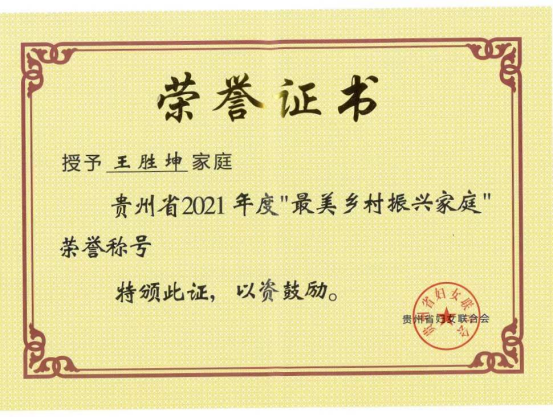 近日,贵州省妇联对全省“最美乡村振兴家庭”进行表彰,我校人事处副处长、全省脱贫攻坚优秀村第一书记王胜坤老师荣获贵州省2021年度“最美乡村振兴家庭”荣誉称号。