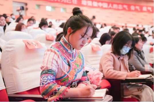 12月21日,学习贯彻党的十九届六中全会和省委十二届十次全会精神宣讲报告会在贵州民族大学举行,省委宣讲团成员、遵义医科大学党委书记何志旭作宣讲报告。校领导褚光荣、王林、张鹏程、杨声国、熊元、周杰、任达森、黄其松以及我校党委委员奉振、任洁,遵义医科大学党委委员、宣传部部长李均出席,我校全体处级干部、师生代表共400余人到场聆听。校党委书记褚光荣主持宣讲报告会。