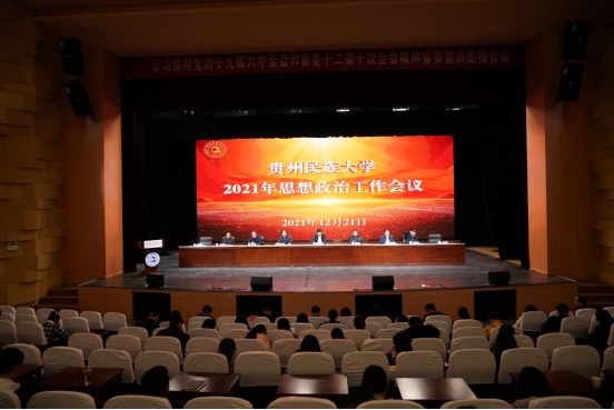 12月21日,贵州民族大学2021年思想政治工作会在大学城校区学生活动中心礼堂召开,校党委书记褚光荣出席并讲话,校党委副书记、校长王林主持会议。校领导张鹏程、杨声国、熊元、周杰、任达森、黄其松以及校党委委员奉振、任洁出席。各职能部门负责人,学院党政主要负责人,全体辅导员、教师代表、学生代表近400人参会。
