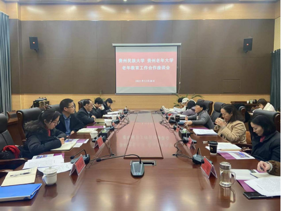 12月28日,校党委委员、副校长任达森一行赴贵州老年大学,就共同推进新时代老年教育高质量发展进行交流座谈。贵州老年大学党委副书记、副校长黄广钦,贵州老年大学党委委员、副校长胡素月,贵州老年大学有关处室主要负责人,我校教务处、科研处、公共关系处、培训部有关负责人参加了座谈会。