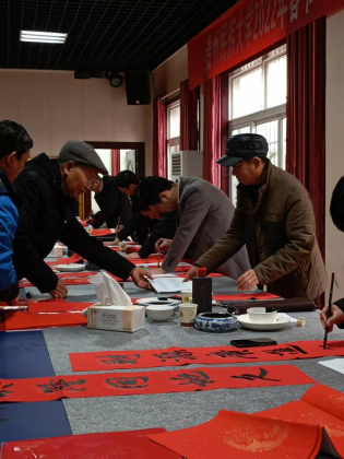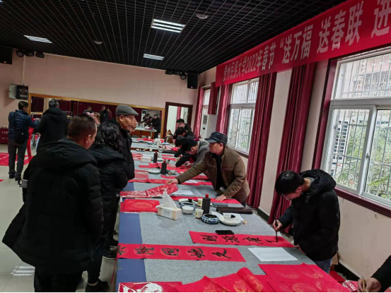 活动现场,写春联的老师们挥毫泼墨、笔走龙蛇,一个个“福”字、一副副春联跃然纸上,楷书、行书各显神韵;大红春联喜庆热烈,丰润的墨迹闪亮生辉,一幅幅精彩的对联,一句句吉祥的祝福,为即将到来的春节增添了浓浓的年味。