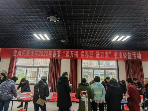 为弘扬中华优秀传统文化,丰富教职工精神文化生活,1月6日,校工会在花溪校区教职工活动中心开展了“送万福、进万家”书法公益活动。