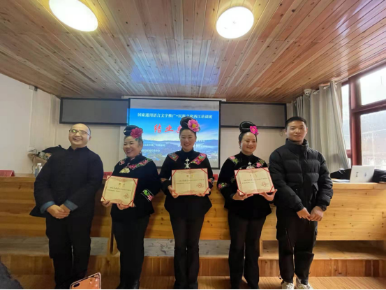 近日,由教育部新农科项目组、贵州民族大学西江教学实践基地、贵州省民汉双语服务基地等单位共同举办的“国家通用语言文字+民族文化”培训在西江苗寨落下帷幕。参训的40余名村民学员顺利结业。