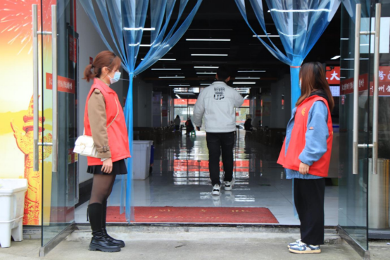 志愿者在食堂开展常态化疫情防控措