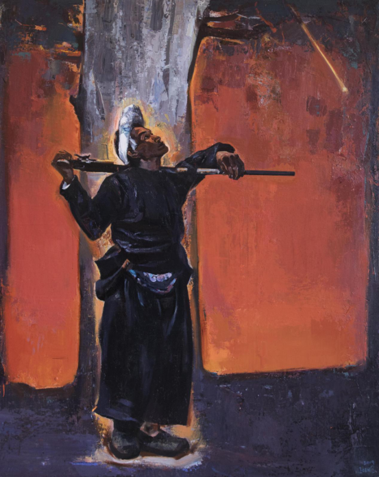 《林间空地》是王仕明近年来不断挖掘民族题材创作的集中呈现,旨在研究地域造型语言、探索绘画本体、传递本土情怀和民族精神。该系列作品围绕一个叫“岜沙”的苗寨展开,以当地风物、人、参天古树等为表达元素,架构一个沉稳、有力、丰碑式的造型,让观者不自觉地进入一种既熟悉又陌生的视觉体验中,形成一个有深度空间的“内在视域”。