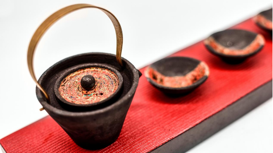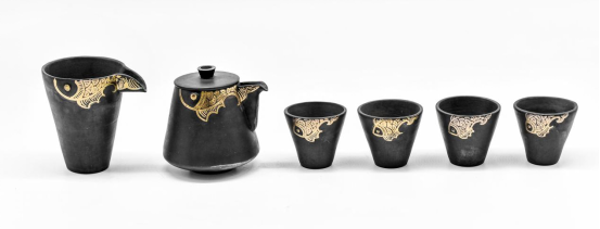 《茶具(系列)》作品:依托贵州丰富的民族文化资源,以织金砂陶为切入点、市场需求为导向、改良创新为手段、提升砂陶竞争力为目标,结合多种工艺技法设计制作出富有文化内涵、彰显贵州特色、符合当代审美的砂陶实用产品,实现非遗的创新性发展和创造性转化。