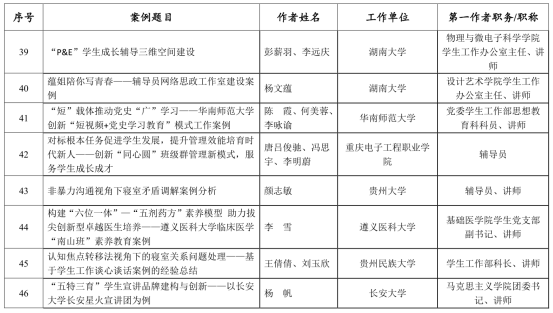近日,2021年度全国高校思想政治工作优秀案例征集结果公示,我校王倩倩、刘玉欣两位老师撰写的《认知焦点转移法视角下的寝室关系问题处理——基于学生工作谈心谈话案例的经验总结》荣获全国优秀工作案例一等奖。据悉,本次活动共评选出一等奖46篇,二等奖87篇,三等奖117篇,优秀奖131篇。贵州省共有3篇优秀工作案例入选一等奖,我校是其中之一。