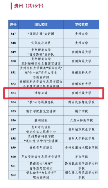 贵州民族大学旅游与航空服务学院“清绿星球”宣讲队成立于2018年,围绕宣传贯彻习近平生态文明思想,积极宣传绿色核能发展理念、“两弹一星”精神、核科普知识,引导社会公众和广大青年学生认识碳达峰碳中和目标的重大意义。下一步,“清绿星球”宣讲队将继续扎实做好“强国有我 ‘核’你一起”志愿宣讲服务,于5月至8月面向学校师生和社会公众开展志愿者宣讲服务。