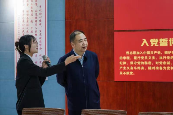 学生代表为晏世忠一行讲解党员求是班的相关情况