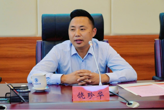 周杰代表全校师生对饶珍华校友及公司的公益情怀表示诚挚感恩和感谢,并向与会校友介绍了学校近年来的发展和取得的成绩。他强调,民大学子要以优秀校友为榜样,学习校友勤学苦干,乐于奉献的优秀品质,掌握扎实的专业技能,培养高尚的道德情操,常怀感恩之心,为学校发展贡献力量。