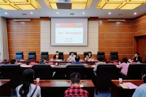 6月14日上午,“诚心”奖学金颁发仪式在我校大学城校区行政楼第一会议室举行。校党委副书记张鹏程,校党委委员、副校长周杰,优秀校友、贵州诚心建设有限公司董事长饶珍华出席活动。会议由公共关系处处长赵湛娇主持。