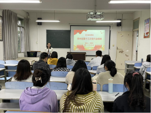 为全面深入学习贯彻省第十三次党代会精神,引导学院全体教师把思想和行动统一到党代会精神上来,社会学院党委组织了学习宣传贯彻贵州省第十三次党代会精神专题宣讲会。社会学院党委书记李黎为全体教职工作专题宣讲。