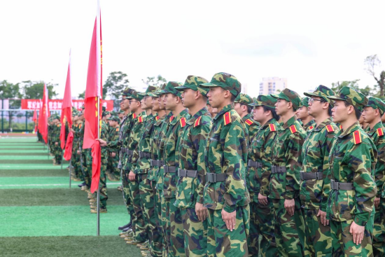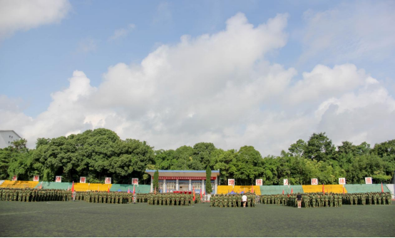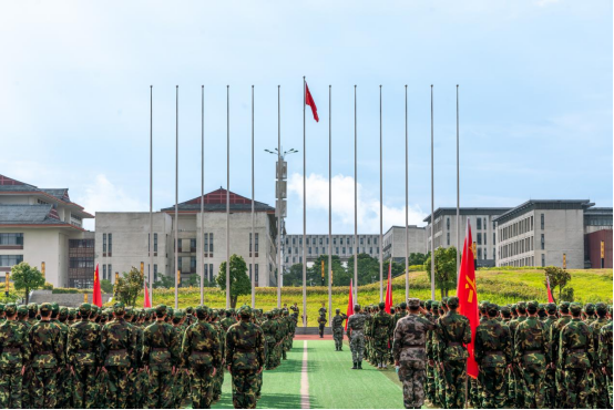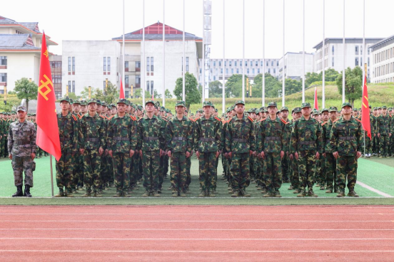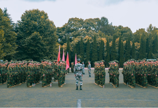 奏唱《中国人民解放军军歌》后,我校2021级全体学生正式开始为期15天的军事训练。他们将通过本次军训接受爱国主义、集体主义、革命英雄主义教育,学习掌握基本军事技能,增强国防意识,锤炼坚强的意志品格,历经汗水磨砺,将以更坚毅和勇敢的风采为精彩的大学生活增添华章。
