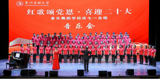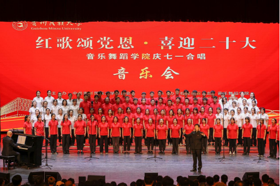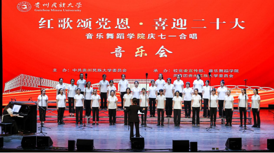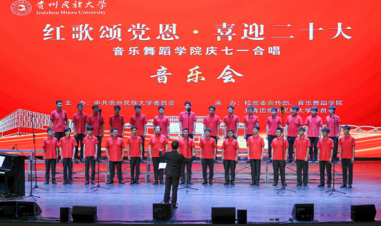 在建党101周年之际,为迎接党的二十大胜利召开,推进党史学习教育常态化长效化。6月30日,“红歌颂党恩 喜迎二十大”贵州民族大学庆“七一”合唱音乐会在大学城校区举行。校领导褚光荣、王林、张鹏程、杨声国、周杰、吴嶷晖、任达森、黄其松以及校党委委员奉振、任洁出席。相关职能部门负责人、各学院党政负责人、师生代表到场聆听。