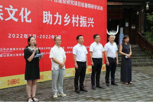 7月2日,我校新农科项目“弘扬民族文化,助力乡村振兴”暑期研学活动在西江苗寨举行。来自贵州省民间文艺家协会、中共雷山县委宣传部、雷山县文旅局、雷山县非物质文化遗产保护中心、西江苗族博物馆、西江旅游公司等单位相关领导及贵州民族大学师生代表50余人参加了启动仪式。启动仪式由雷山县人民政府副县长杨亚群主持。
