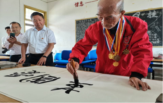 熊雨山老人现场为贵州民族大学师生题字