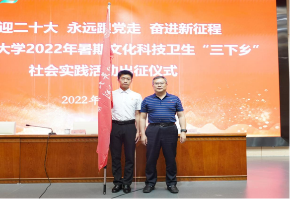 校党委副书记、校长王林为“扬帆计划”实习生代表、暑期“三下乡”实践团队代表授旗。