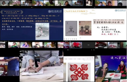 本次项目由我校国际教育学院承办,历时一个月,通过网络直播和录播的形式为学生提供了沉浸式汉语学习环境,带领学生以轻松愉快的互动方式学习汉语、领略中国文化和贵州少数民族文化风情。项目主要由汉语基础课、文化体验课及实地云上直播课三大板块构成,涵盖了汉语基础听说、阅读、汉字、中华礼仪、太极、茶艺、国画、陶艺、喀斯特地貌探索等丰富内容。授课教师根据学生的汉语水平和个体差异,采用多样化的教学方法和教学模式,选取丰富且具趣味性的教学素材,因材施教,极大地调动了学生的积极性和主动性,得到了西米沙鄢国立大学师生的高度好评。