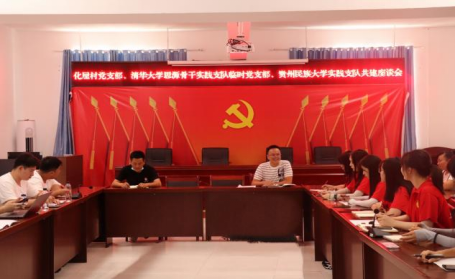 7月22日,贵州省黔西市化屋村党支部、清华大学载梦黔行:2022年思源骨干计划第十六期赴贵州社会实践团和贵州民族大学“石榴籽一家亲”民族团结实践团在化屋村村委会围绕“党建引领乡村振兴”联合开展党课共建座谈会。