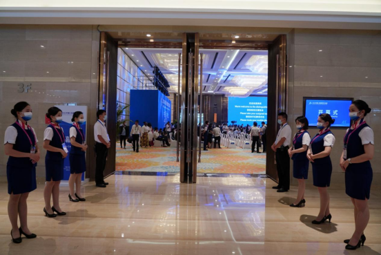 交流周开幕式现场,贵州民族大学派出旅游与航空服务学院近80名学生为大会提供礼仪志愿服务。