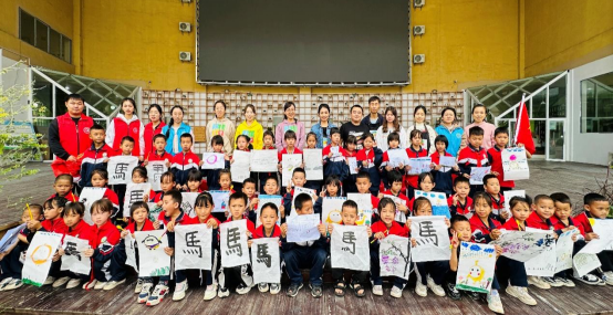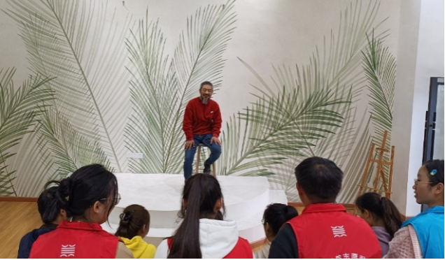 图书馆阅读推广经验分享环节中,贵州民族大学图书馆馆长卢云辉与册亨县大山小爱志愿者服务协会的图书馆志愿者们进行交流分享阅读推广经验与心得。绘本共读环节,贵州民族大学文学院图书馆学专业志愿者们为现场50名小学生带来了一场生动有趣的绘本共读分享,美术学院“希望树”教育关爱服务队为小学生们普及书画知识、开展书画创意体验活动。贵州民族大学图书馆、美术学院“希望树”教育关爱服务队分别向“榕朶图书馆”赠送了30套学习用品和17幅书画作品。
