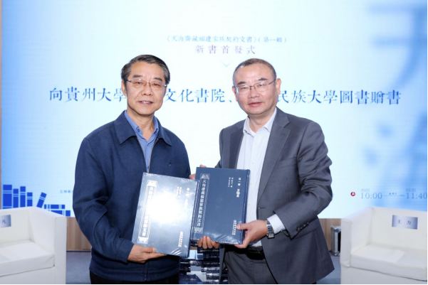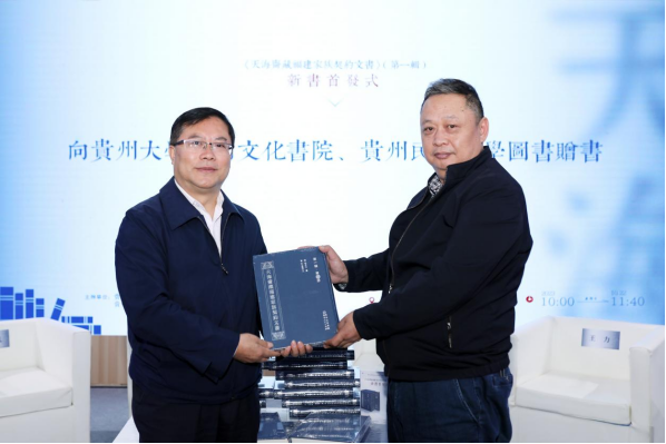 首发仪式上,国家社科基金重大项目首席专家、浙江农林大学储小旵教授,南开大学冯学伟教授,贵州大学闫平凡教授,贵州民族大学王力教授,贵州民族大学图书馆馆员王涛,贵州人民出版社刘泽海编审围绕《天海斋藏福建家族契约文书》的收藏缘起、类型特点、学术价值、现实意义、整理典藏、项目申报、出版计划等话题对谈。贵州民族大学图书馆与贵州大学中国文化书院分别获赠图书。