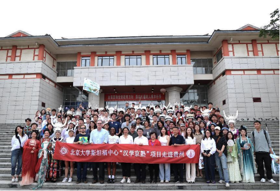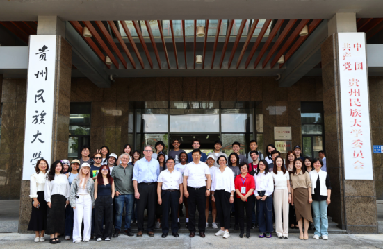 2024年5月22日,23名北京大学斯坦福中心“汉学京塾”项目师生赴贵州民族大学访问交流,北京大学国际合作部留学生办公室相关负责人陪同来访。贵州民族大学党委书记褚光荣、校长王林会见来宾,副校长卢云峰及相关职能部门负责人参加。