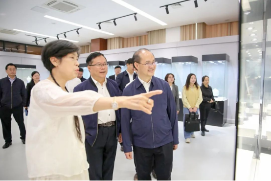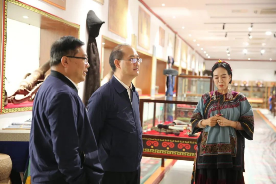 在贵州民族大学图书馆,杨同光听取贵州民族大学中华民族共同体研究中心研究成果汇报,了解该校美术学科建设成果,参观贵州民族大学陶瓷艺术研究院院长、中国工艺美术大师曾瑾作品展陈及图书馆馆藏彝族古籍资料,还听取了岩画课题组对贞丰县红岩岩画调研情况汇报,对学校在中华民族共同体理论体系研究方面取得的成果表示赞赏,并鼓励学校继续深化研究,推动学科交叉融合。