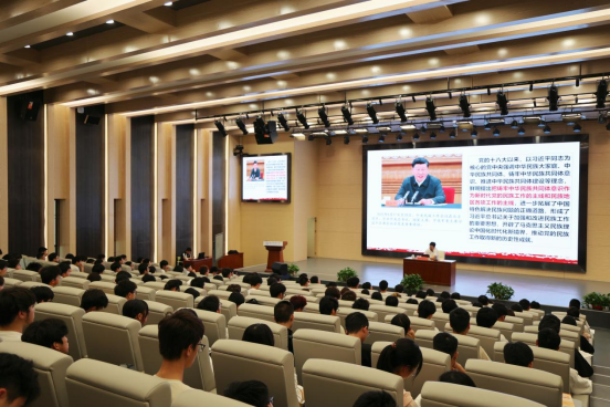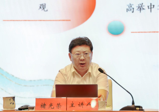 褚光荣以“铸牢中华民族共同体意识,为中国式现代化建设贡献青春力量”为主题,围绕“党中央作出铸牢中华民族共同体意识重大决策部署的战略意义是什么?”“如何准确把握铸牢中华民族共同体意识的丰富内涵?”“作为民大青年,铸牢中华民族共同体意识我们应当作为?”三个问题展开了深入探讨。