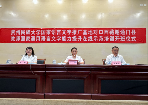 9月20日下午,由贵州民族大学“国家语言文字推广基地”组织的“国家乡村振兴对口西藏谢通门县教师国家通用语言文字能力提升在线示范培训”班举行线上开班仪式。学校党委委员、副校长汪红出席。