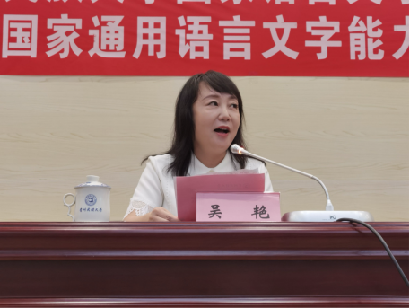 随后,贵州民族大学国家通用语言文字推广基地常务副主任、文学院院长吴电雷教授介绍了贵州民族大学国家通用语言文字推广基地工作情况。