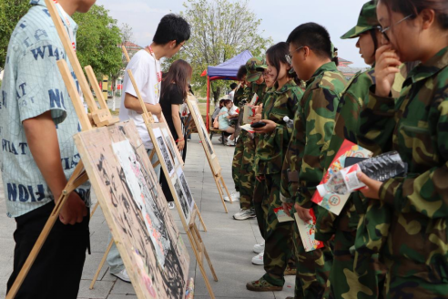 此次活动分为参观、答题等多个环节。时值学校国防教育专题活动期间,现场还吸引了大量穿着迷彩服的2024级新生。