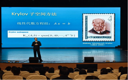 报告中,袁亚湘院士首先介绍了计算的历史、现状和发展趋势,接着介绍了计算工具的进化历程。他表示:计算工具的进步很重要,但是计算方法也很重要。随后,袁亚湘院士综述了计算方法的发展,并对牛顿计算法、高斯消元法、欧拉方法、最速下降法、共轭梯度法、Krylov子空间方法、随机梯度法等若干重要计算方法其及思想进行了生动的介绍。