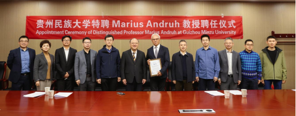 Marius Andruh教授表示,很高兴能够受聘并加入贵州民族大学,与同行专家们开展在化学领域的研究、合作和交流,将发挥自身优势和桥梁纽带作用,促进贵州民族大学与罗马尼亚及欧洲高水平大学在科学研究、人才培养等方面的合作交流。