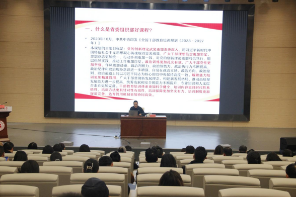 校党委常委、党办主任、校办主任李雪如讲授“学习贯彻贵州民族大学第三次党员代表大会精神专题”