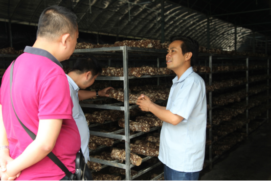 六枝上善和公司陈显贵介绍贫困群众在食用菌基地的务工情况